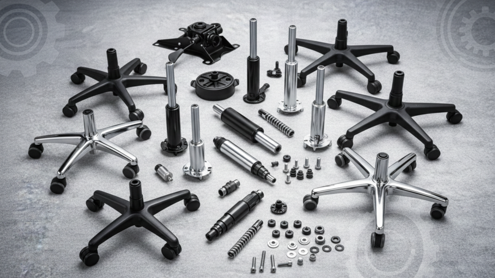 نوفر تشكيلة واسعة من قطع غيار كراسي مكتب أصلية تناسب كافة الماركات العالمية والمحلية. تشمل خدماتنا توفير مساعد كراسي مكتب (باكم)، عجل كراسي مكتب فائق الجودة، وقواعد (نجمة) متينة. جميع قطع الغيار لدينا تضمن لك عمرًا افتراضيًا أطول للكرسي وأداءً انسيابيًا تمامًا كالجديد.